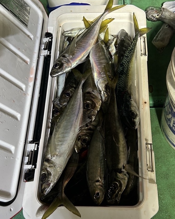 アカイカ、アジ釣り 2025年6月23日 2025年7月1日 6/20(金)夜アカイカ五目釣りでした🎣 トップは7杯‼️ アジもサバも特大サイズが釣れてます🐟❗️ クーラーBOX満タンでした😁 ありがとうございました😎