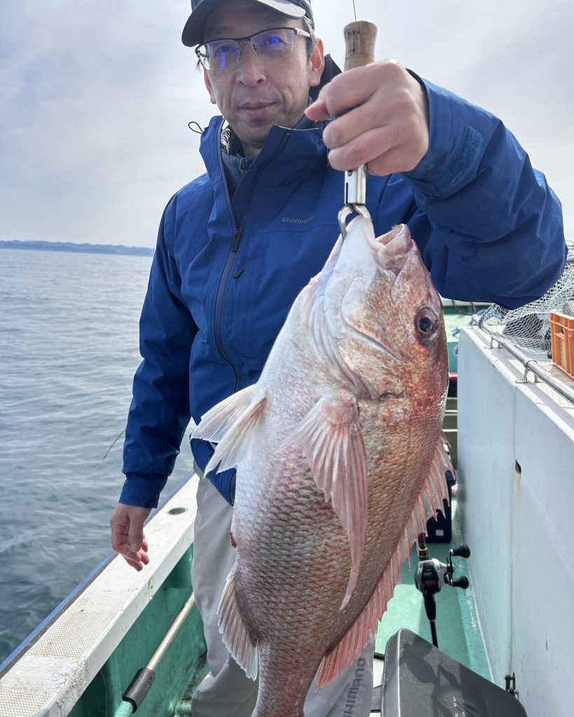 ディープタイラバ 2026年4月15日 2026年4月15日 本日ディープタイラバ釣りでした🎣 二枚潮で難しい中頑張っていただきました❗️ 真鯛が船中4枚🐟 アラ2枚とブリ9キロ台1本❗️ 他、良型アマダイ、カサゴでした❗️ 本日もありがとうございました😎